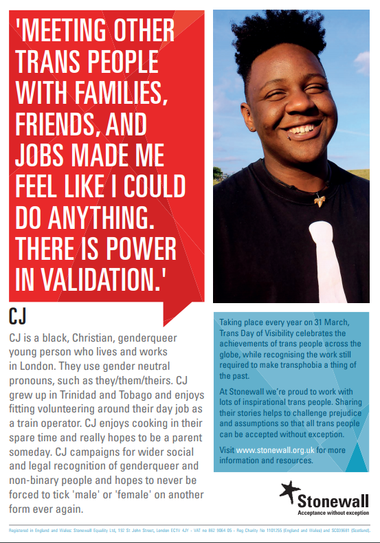 [Image: Trans Visibility Posters from Stonewall, available here]