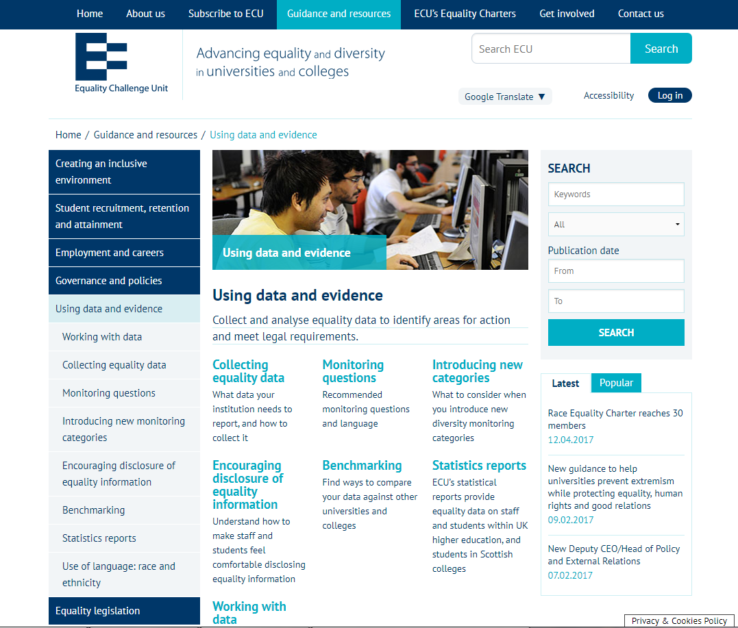 The Equality Challenge Unit has extensive guidance on equality monitoring for HE and FE institutions. Follow this link to access their webpages and resources.